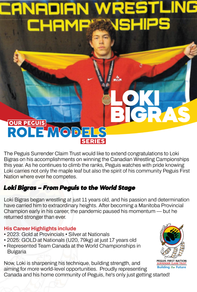 The Peguis Surrender Claim Trust Role Model Series proudly honors outstanding members of the Peguis First Nation who exemplify leadership, resilience, and dedication to their community. This inspiring series highlights individuals whose achievements and commitment serve as powerful examples for current and future generations.